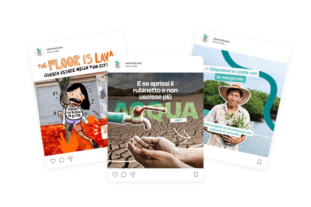 Podcasts and video series, illustrations and video animations, collaborations with creators and activists, infographics, graphic templates for social media, blog posts, and newsletters. We imagine and craft them all with a narrative that is both authentic and close to your brand’s spirit, visual identity, and values. Ask us a question or start by telling us what you may need.