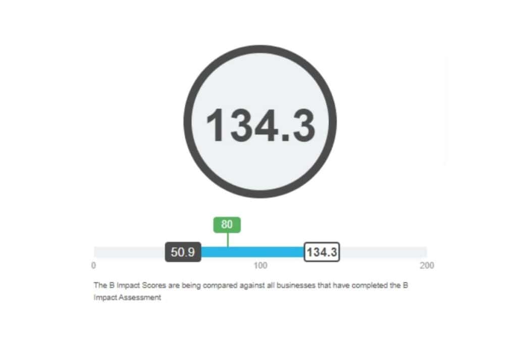 Le B Corporation sono imprese che soddisfano i più alti standard di prestazioni sociali e ambientali, trasparenza e responsabilità, bilanciando profitto e scopo. E farne parte è per noi un riconoscimento enorme, ottenuto con un punteggio di 134.3 su 200.