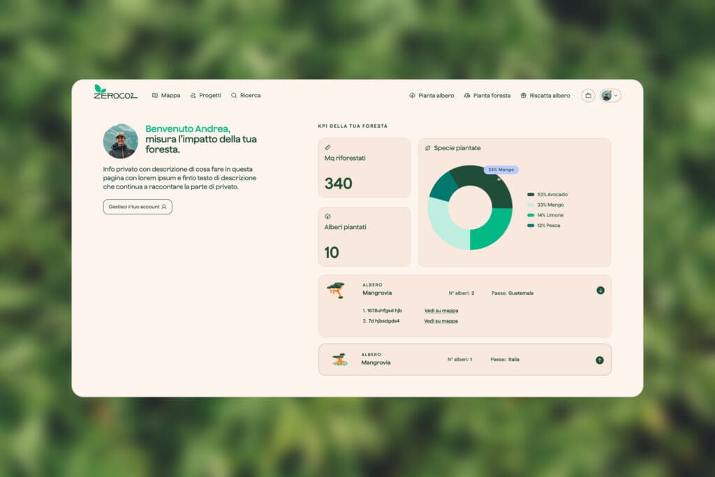 Sulla piattaforma puoi tenere sotto controllo l’impatto che stai generando un’unica dashboard, attraverso grafici e statistiche relative ai tuoi alberi.