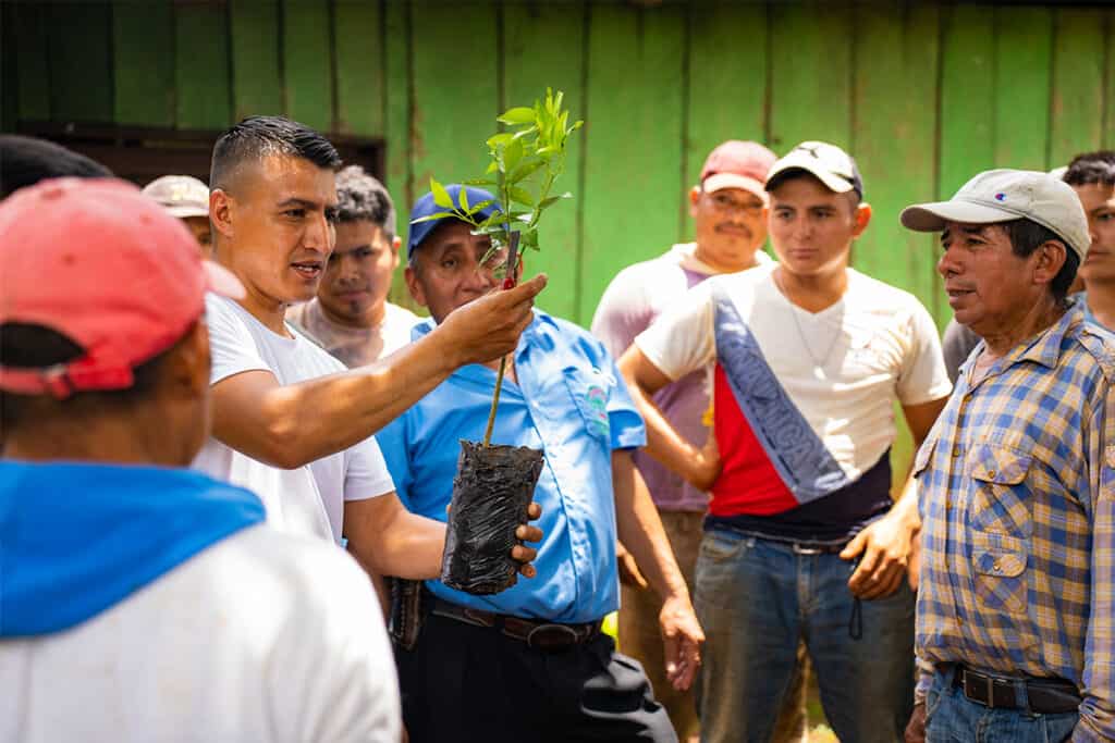 Coinvolgiamo attivamente le comunità locali nella creazione e nella messa a terra dei progetti così da rispondere meglio alle necessità territoriali. Lo facciamo fornendo strumenti per resistere alla deforestazione.